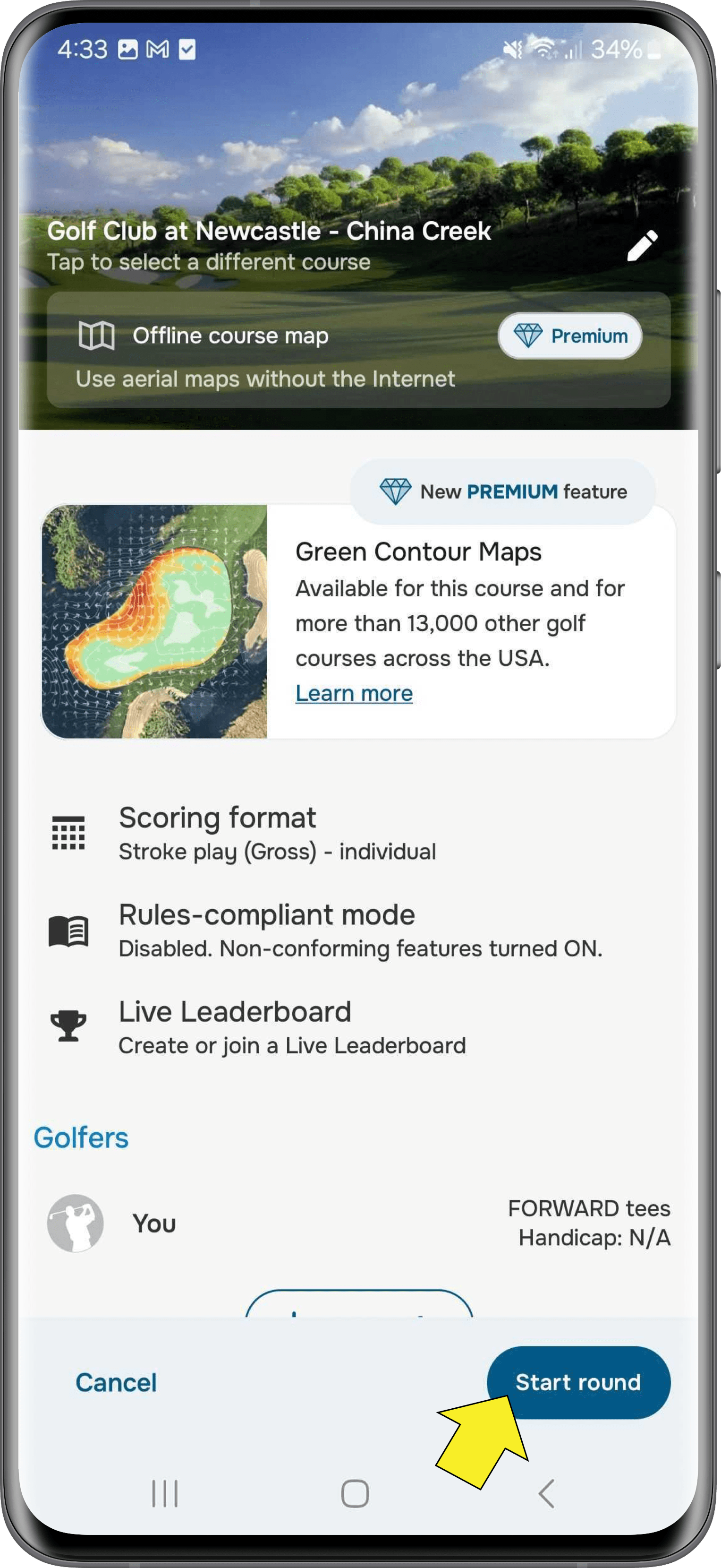 2. Open Golf Pad app on your phone, start a new round as you usually do.