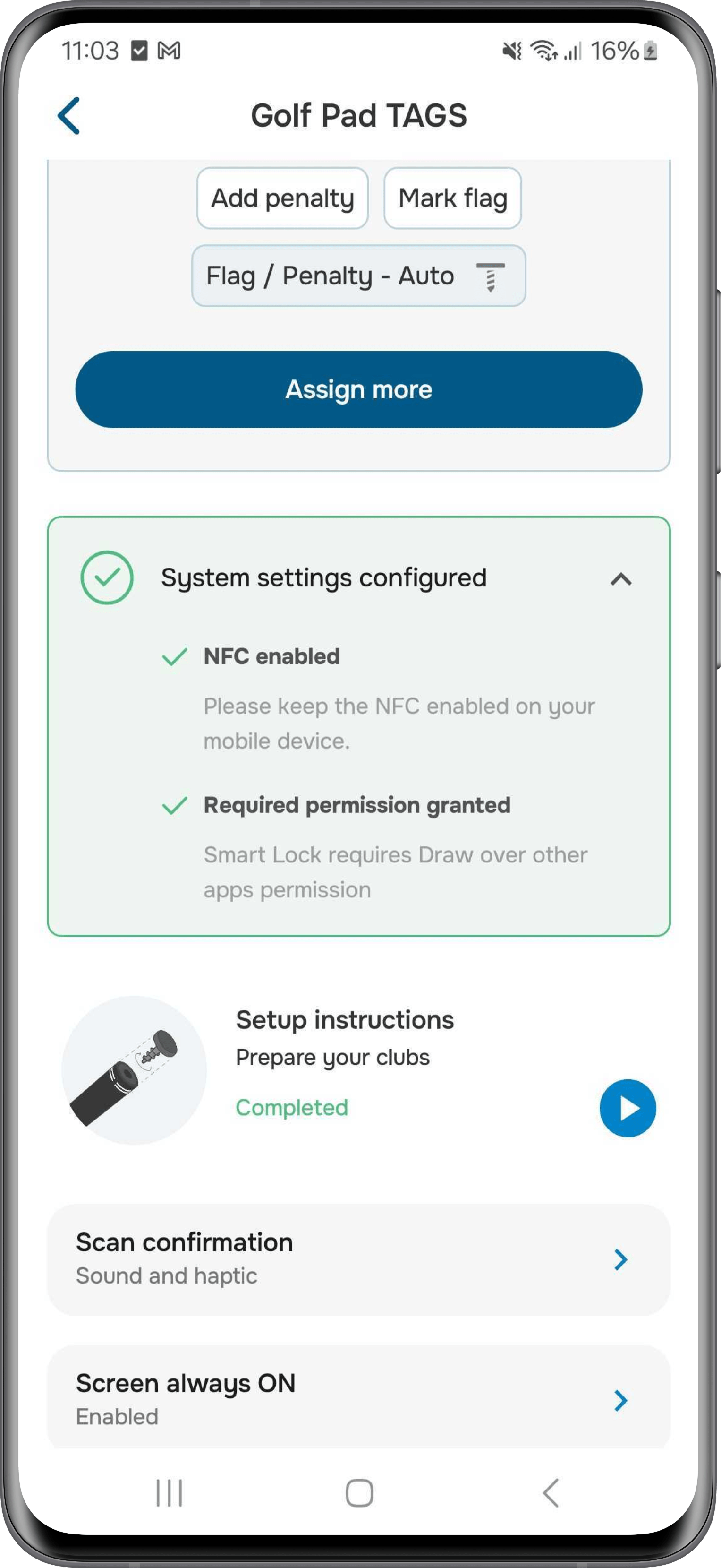 5) Go back, tap "Assign more" and scan a TAG to assign a club